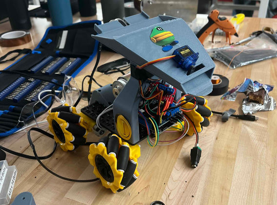 The team spent the entire night from 6pm until 8am the following morning designing and implementing a new conveyor based magnet system. While admittedly less interesting than a homemade electromagnet, the conveyor of magnets proved far more reliable. Additionally, the newly designed and 3D printed storage funnel could hold over a dozen coins in between drop off runs.